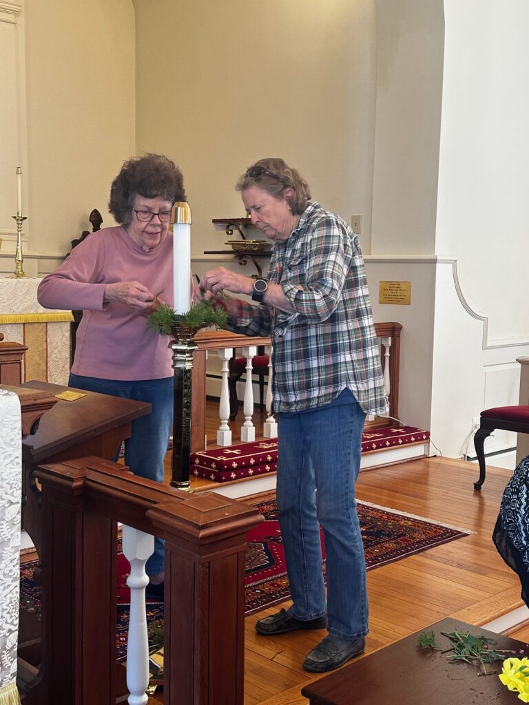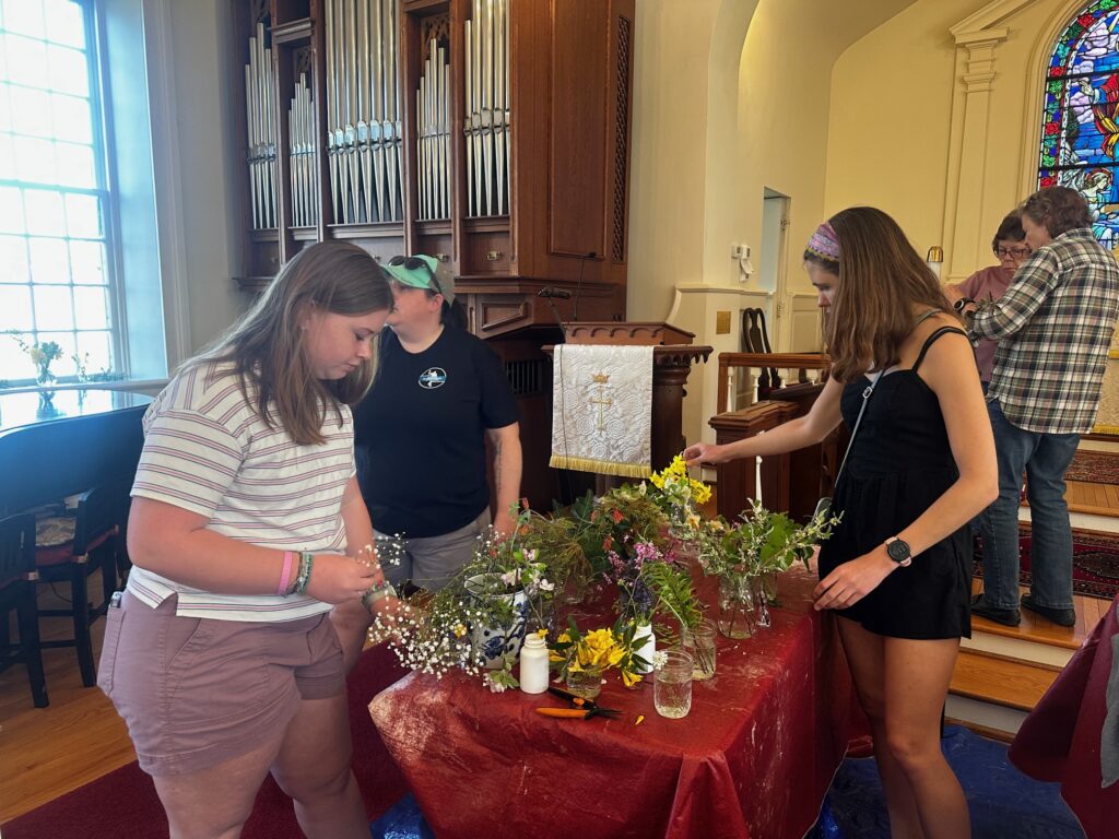 Parishioners of all ages gather to decorate St. John’s with flowers for our Easter Service.